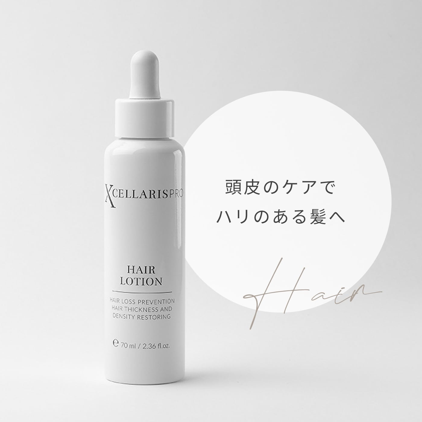 エクセラリスプロ ヘアローションは頭皮の角質層へ浸透し、髪にはりを与えます。