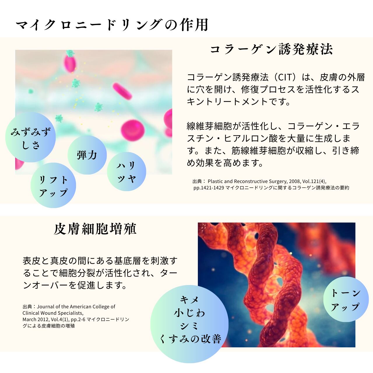 162本の極小(最大鍼径0.08mm)の医療グレードステンレス製マイクロニードルが90度の角度で肌に当たり、有効成分が最適に吸収されるよう設計されております。