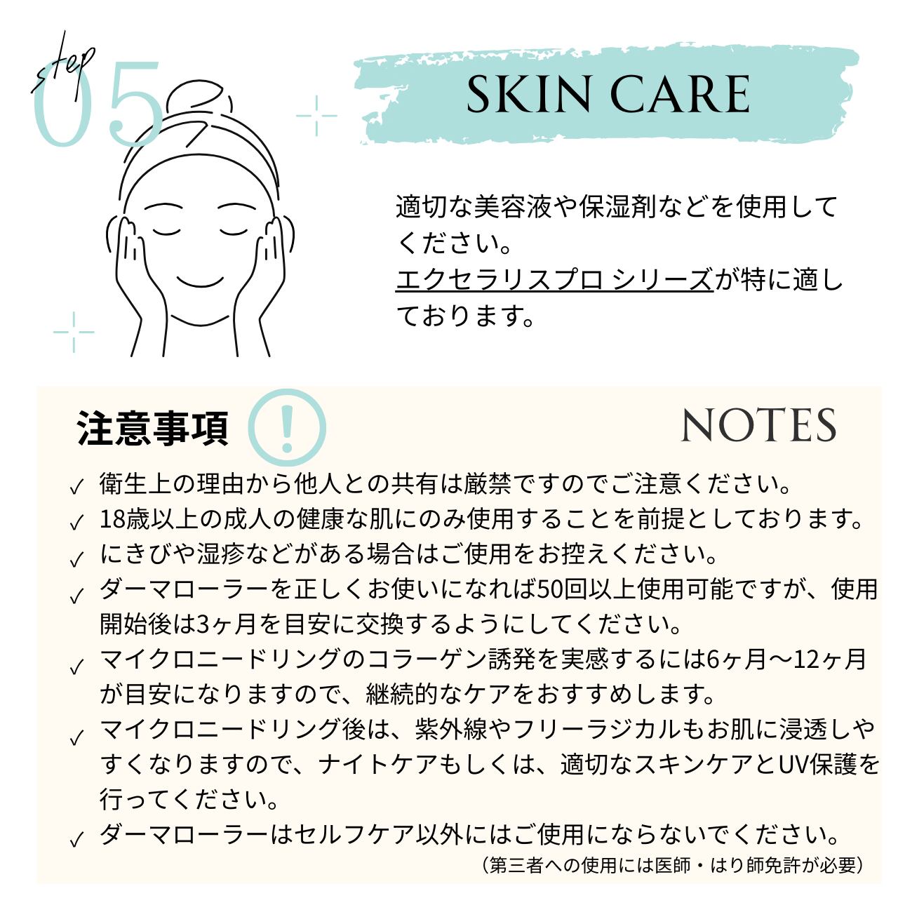 ※ダーマローラーHC902を正しくお使いになれば50回以上使用可能ですが、使用開始後は3ヶ月を目安に交換するようにしてください。